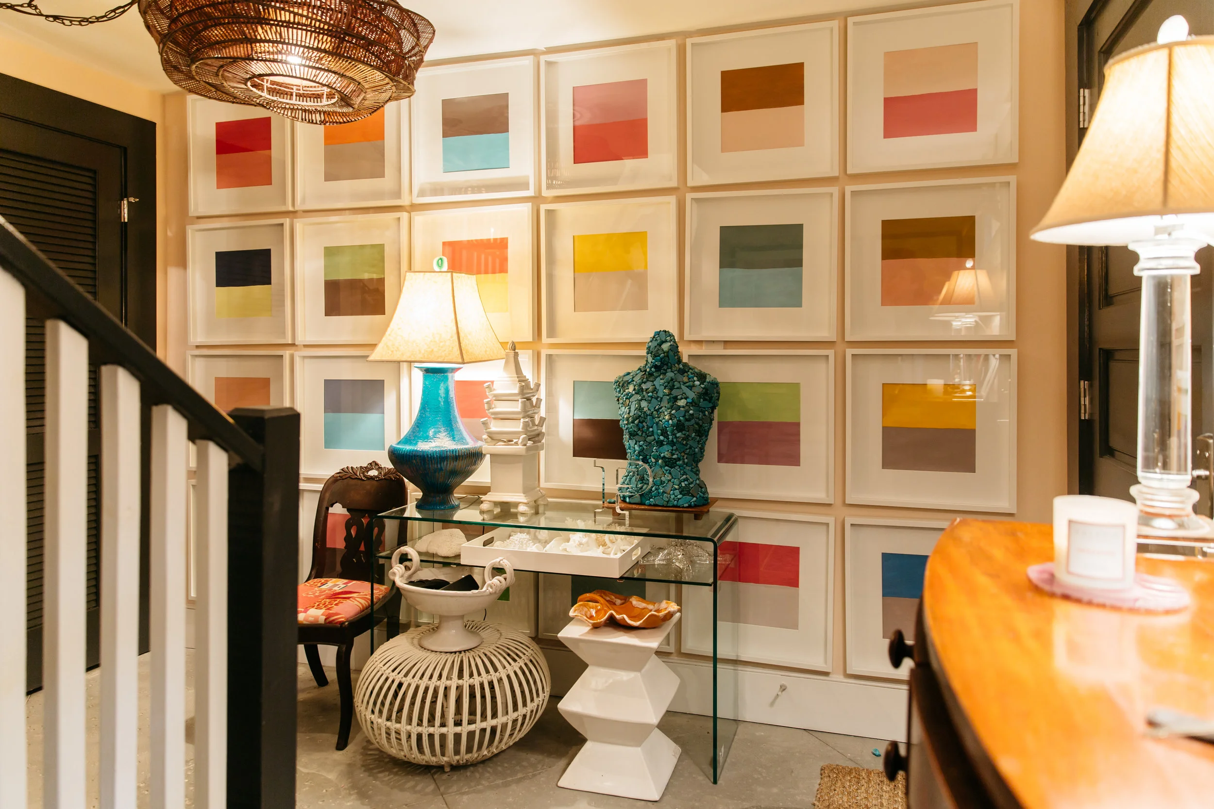 Whether it's creating a custom wall based around a particular color palette or if it's repurposing art you already own in such a way that it transforms your walls into a gallery fit for an opening, Janet can make it brilliant!